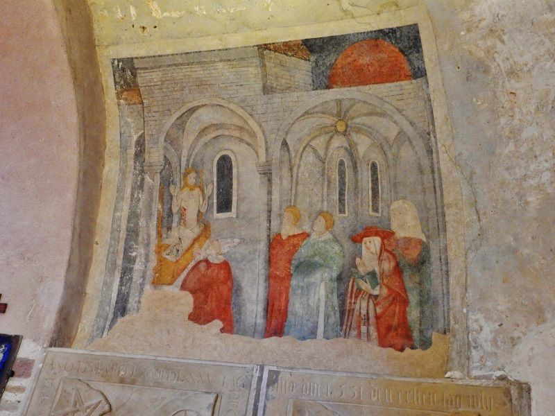 Les fresques sont datées de 1460. Attribuées d'abord à Elisabeth de Blumeneck, il semble que ce sont des peintres bâlois qui ont effectués ces oeuvres remarquables qui se rapprochent plus des oeuvres bâloises du 15è s.
